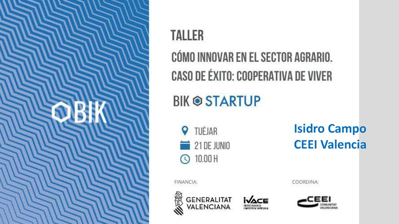 Presentación utilizada por Isidro Campo, Técnico de Innovación y Proyectos de CEEI Valencia, en la sesión Cómo innovar en el sector agrario. Caso de éxito: Cooperativa de Viver, realizada el 21 de junio en Tuéjar.