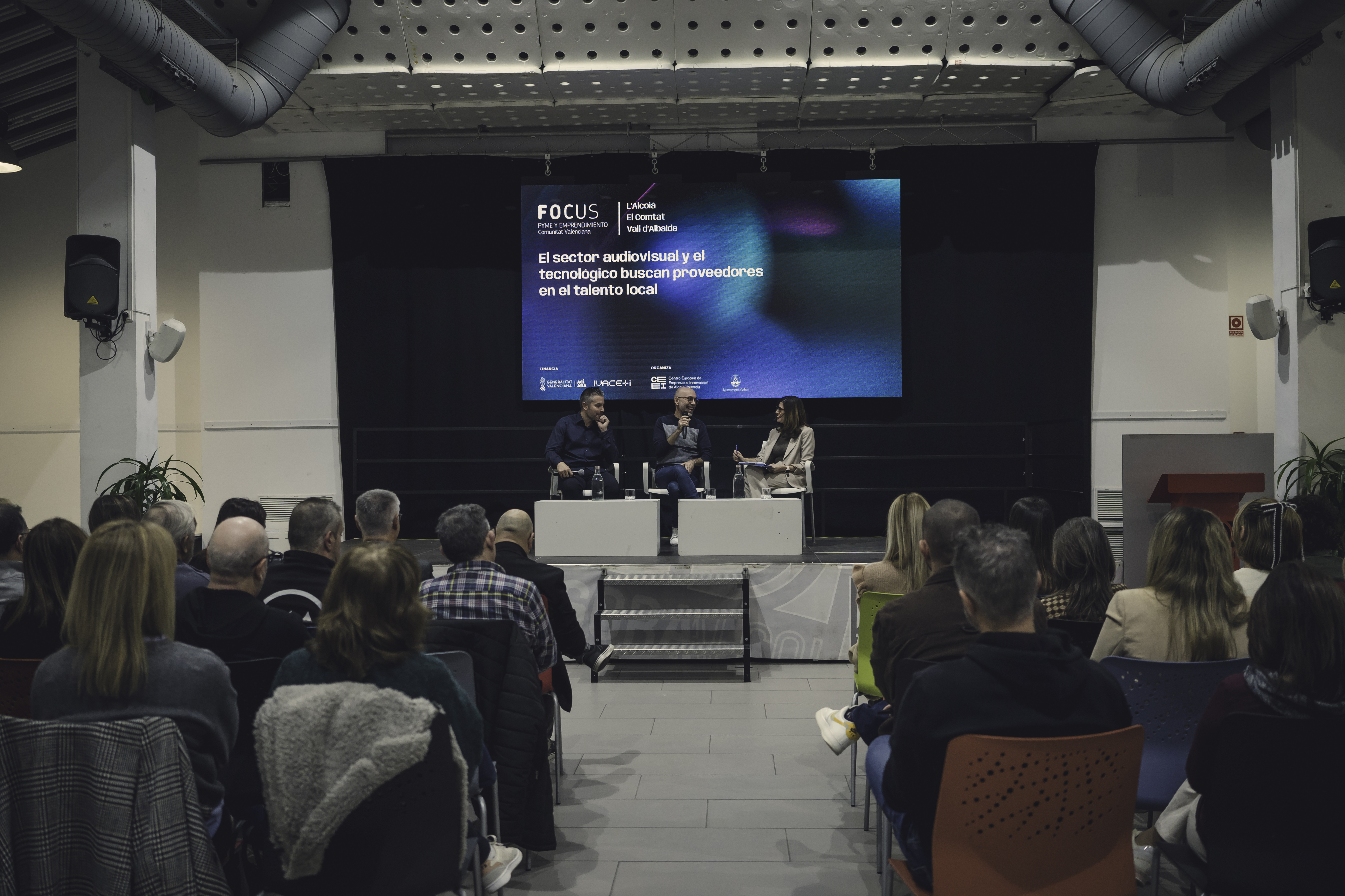 Encuentro Focus Pyme y Emprendimiento l'Alcoià, El Comtat y Vall d'Albaida "El sector audiovisual y el tecnológico buscan proveedores en el talento local" celebrado el 18 de noviembre de 2025 en Alcoy.