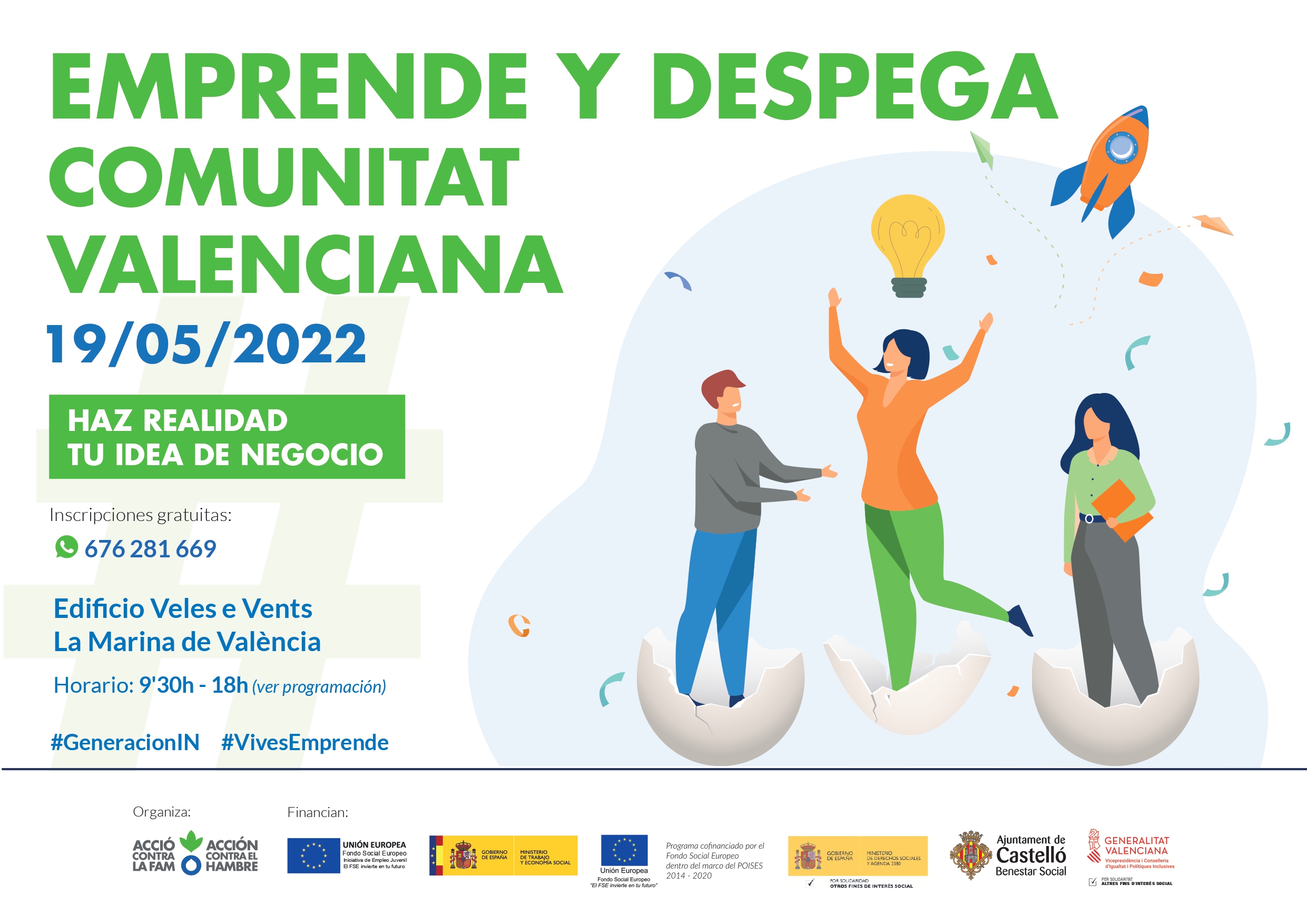 Este proyecto está financiado por el Fondo Social Europeo, el Ministerio de Trabajo y Economía Social, y la concejalía de Bienestar Social del Ayuntamiento de Castelló de la Plana. Además, cuenta con la colaboración de diversas entidades públicas y privadas del ecosistema emprendedor y juvenil de la Comunitat Valenciana.