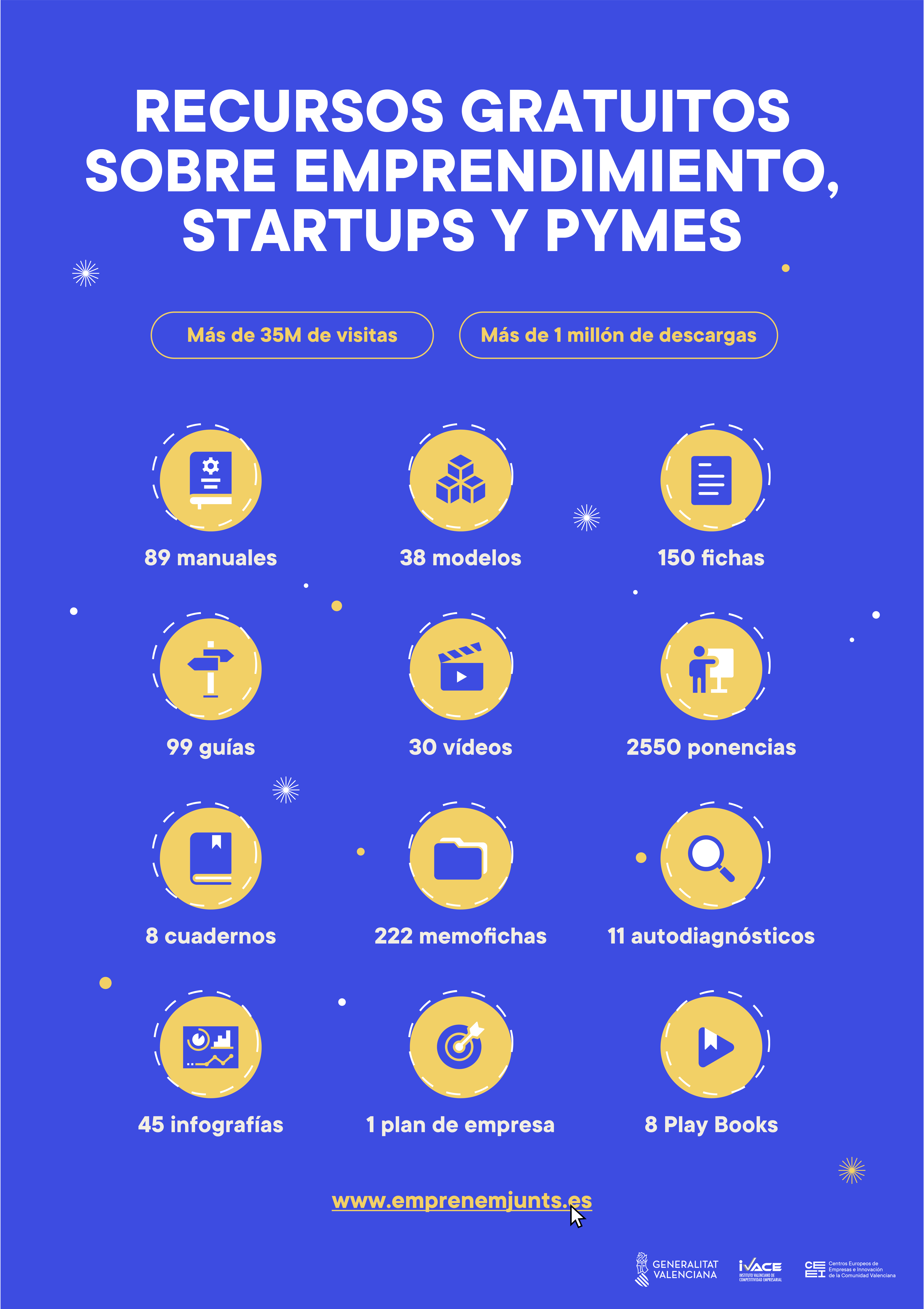 Con más de 35 millones de visitas y, más de un millón de descargas, el portal de Emprenemjunts, recoge más de 700 recursos gratuitos que, como este, están a disposición de personas emprendedoras y pymes con el objetivo de promover y fomentar el desarrollo empresarial valenciano.