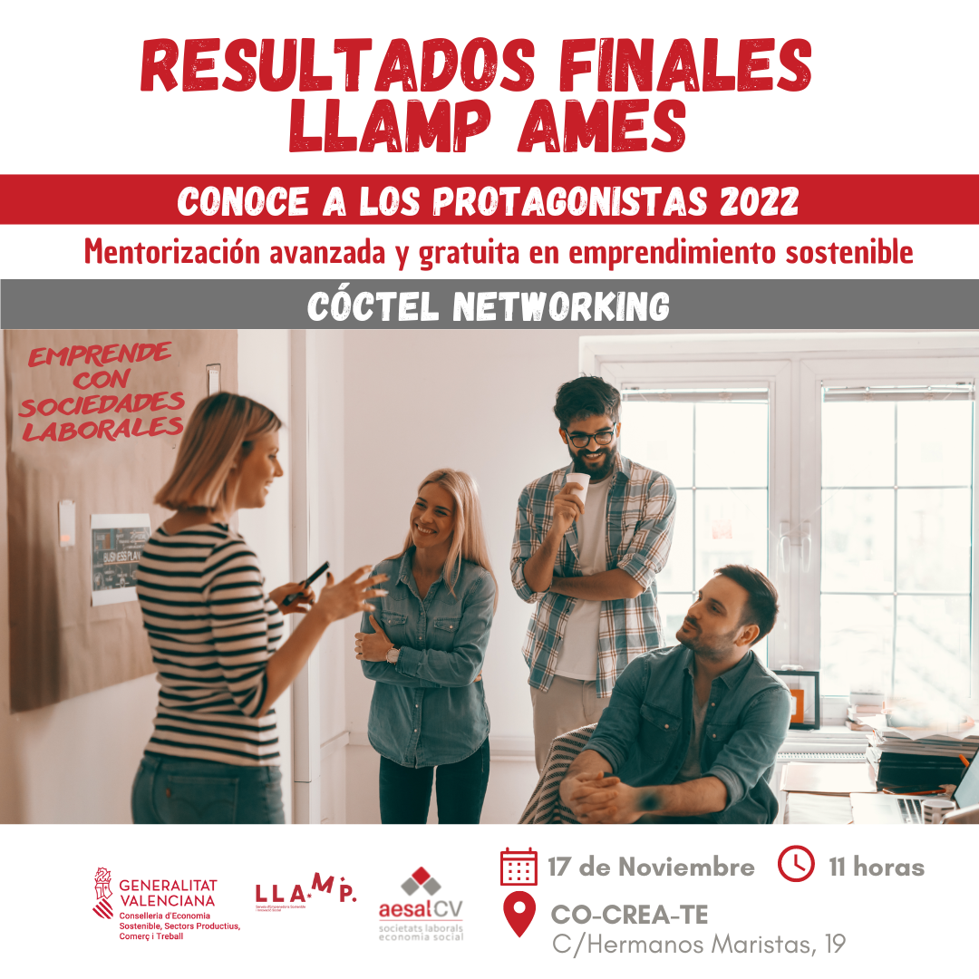 Ven a conocer los diferentes proyectos que han formado parte del Programa LLAMP AMES, y aprovecha la oportunidad de interactuar con sus protagonista en el cóctel networking para crear sinergias con las otras empresas y ampliar tu red de contactos.