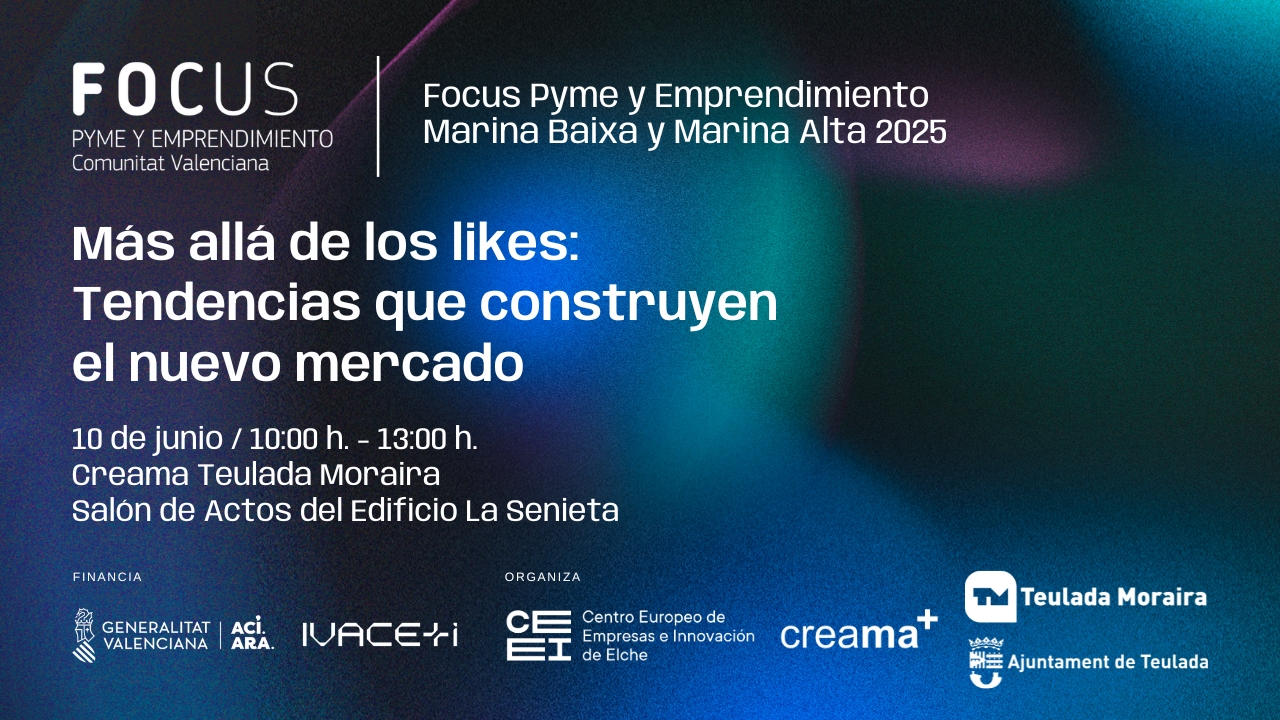 En este encuentro Focus Pyme y Emprendimiento que aglutina las comarcas de la Marina Baixa y la Marina Alta, hablaremos sobre las nuevas tendencias en el mundo del emprendimiento y en el nuevo mercado, explorando el impacto de las tecnologías emergentes y las dinámicas digitales en la creación de nuevos modelos de negocio. En un entorno marcado por la aceleración del cambio, fenómenos como TikTok, el universo gamer, la inteligencia artificial, y la economía digital están transformando la manera de emprender, conectar y generar valor. Porque hoy, emprender no es solo generar likes, es construir valor real en un entorno conectado, ágil y en constante transformación.