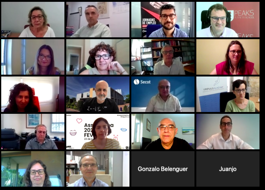 Al encuento han asistido casi medio centenar de agentes: Pilar Guillén de AESAL-CV; Sonia Rujas de la Asociación de Empresarias, Profesionales y Directivas de Alicante (AEPA), Amparo Salomé Reíllo de AVAESEN; Joan Ramón Sanchis de la Càtedra d'Economia del Bé Comú. Universitat de València; Sonia Gil Tena de CEDES Albocàsser Diputación de Castellón; Pep Rubio del Centro de Empleo de la Universidad de Alicante; Rubén García de CEV Alicante; Pilar Gutiérrez de la Confederación Empresarial Comunitat Valenciana; Ricardo Gordo del Consejo de Cámaras de Comercio de la CV; Leonor Bailén de CONVEGA; Ana Rivera de CREAMA; Elena Esteve y Alejandra Gimeno de la Diputación de Castellón; Mila Sycheva de Distrito Digital Comunitat Valenciana; Andrés Alcaina y Vanessa Badenas de DIVALTERRA; Francisco Ronda de FECAP; Ángela Pita de FEVECTA Castellón; Paloma Tarazona de FEVECTA; Juan Antonio Bertolín de la Fundació General UJI - Espaitec Parc Cientific i Tecnològic; Rafael Lafont de FUNDEUN; Encarnación Pérez de la Fundación Parque Científico de Alicante; Berta Clausell de la Fundación Universitat Jaume I - Empresa; Ricard Calvo de GRIDET (Grup d'Investigació en Desenvolupament Territorial de la Universitat de València); Mercedes Ortiz del Ilustre Colegio Oficial de Economistas de Alicante; Loreto Cantó de Impulsa Alicante; Juan Carlos Requena de Fundesem Business School; Juan Fernández, Javier Monrabal, Paco García y Antonio Cortés de SECOT; Abel Torrecillas del Observatorio Ocupacional Universidad Miguel Hernández de Elche; Aristóteles Cañero de PEAKS Business School; Gonzalo Belenguer y Elena Cortés de REDIT; Mónica Carreguí de Reinventhadas; Juan José Lliso del Servicio de Transferencia de Tecnologia-Conselleria de Agricultura; Karina Virrueta de Startup Valencia.