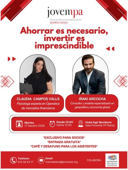 Desde Jovempa Marina Baixa te invitamos a una jornada exclusiva pensada para ayudarte a entender mejor el contexto económico actual y tomar decisiones financieras con mayor criterio.