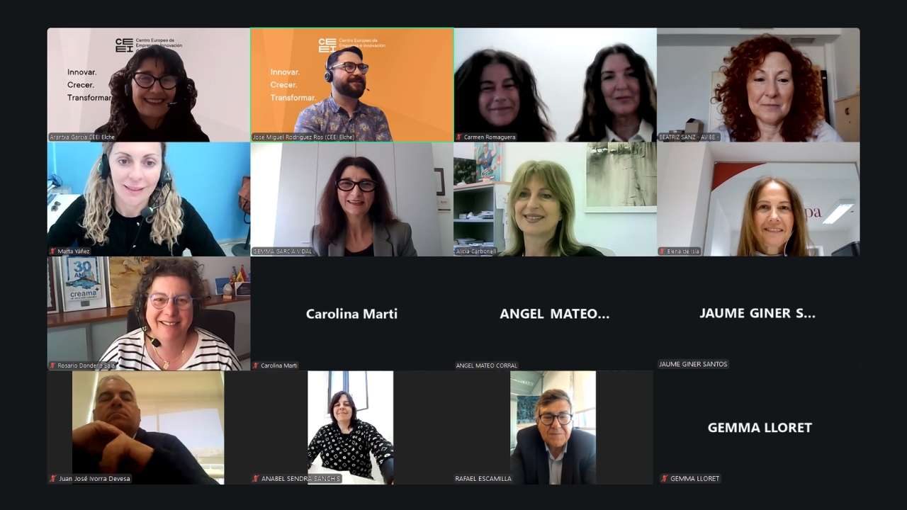 En esta reunión han participado 17 representantes de CEEI Elche, IVACE+i, CREAMA Servicios Generales, CREAMA Teulada Moraira, CREAMA Denia, Ayuntamiento de Orba, Ayuntamiento de El Verger, POMB, FVMP, AECNU, AVIBE, Jovempa Marina Alta y Centre Integrat de Formacio Professional de Dènia.